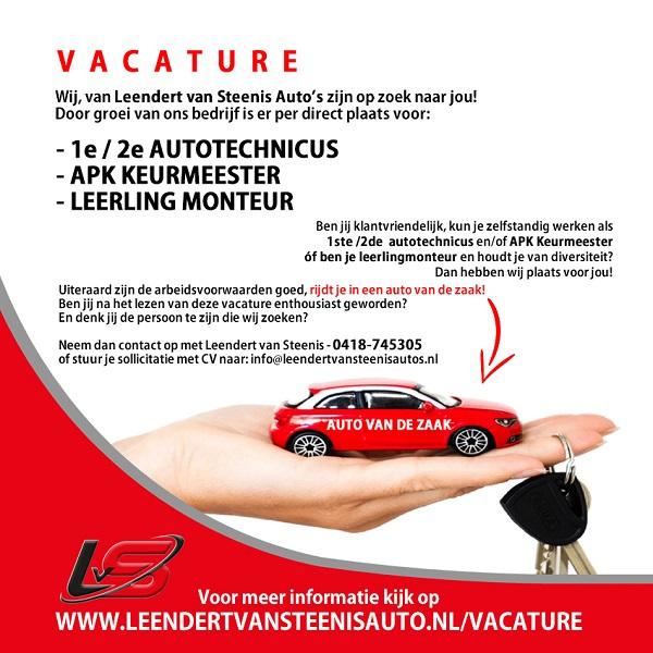 Vacatures: Chef werkplaats – 1e/2e Autotechnicus – APK-keurmeester – Schoonmaker – Hobbyfotograaf – Zaterdaghulp